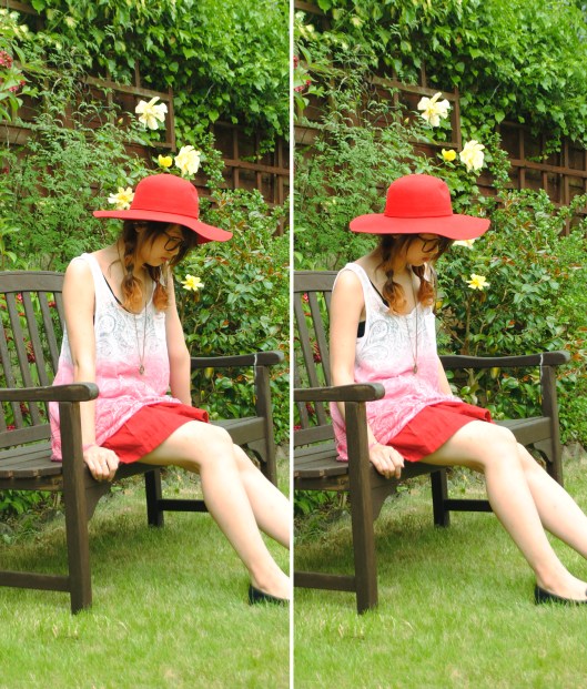 With my ombre top, I wore it with a red skirt cause it’d enhance the gradation of the whole outfit.