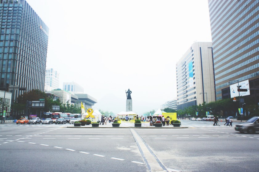 There was a rally or something on Gwanghwamun square that day so we didn’t cross over, we just walked on the parallel sidewalk to go towards Cheonggyecheon stream lol. Below are photos of the square I took from 2014 😂